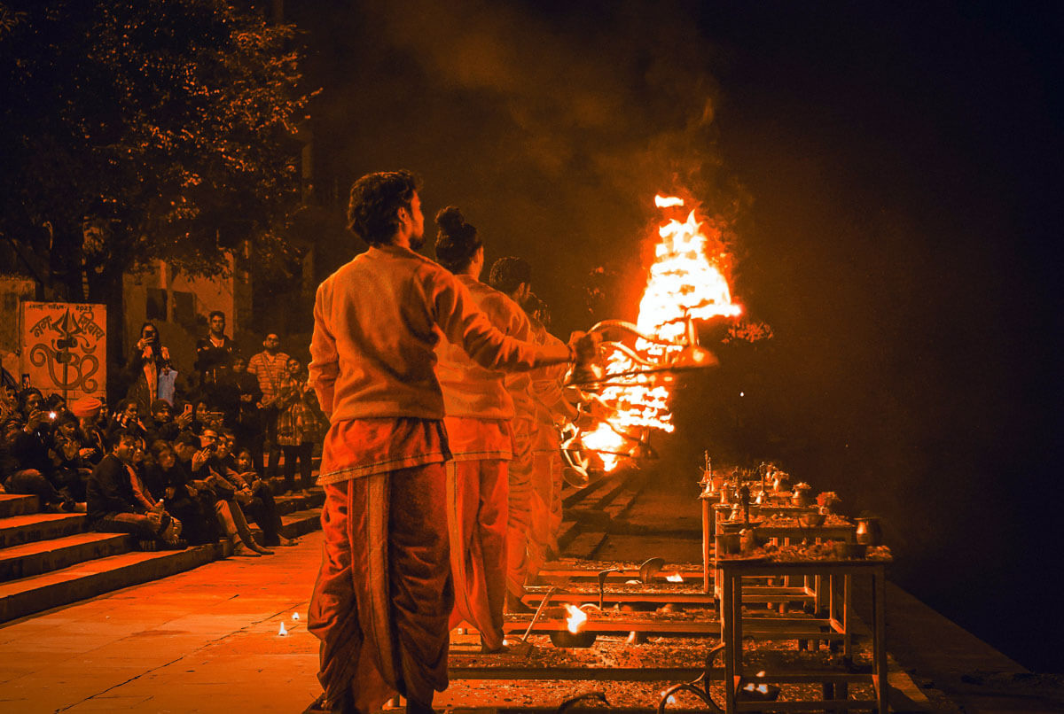 - Varanasi’s sunset aarti (fire) ceremony on the banks of the Ganges River