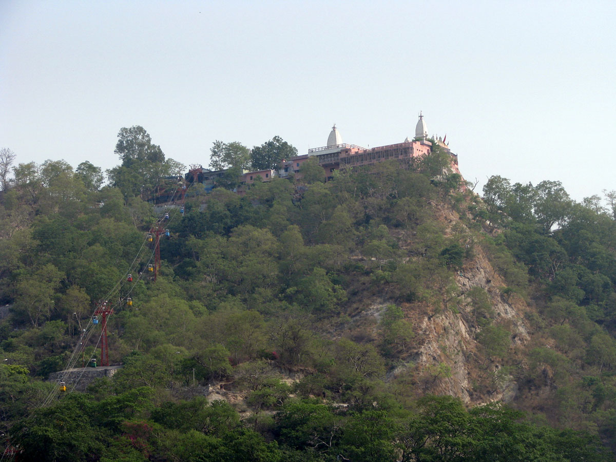 Next drive to another hill temple, the Chandi Devi Temple, dedicated to the Goddess Chandi Devi (Durga) which is on top of a hill overlooking the Ganges a few miles from Haridwar. We get up to the temple via cable car. Local Indian women will be there performing devotionals to the goddess.
