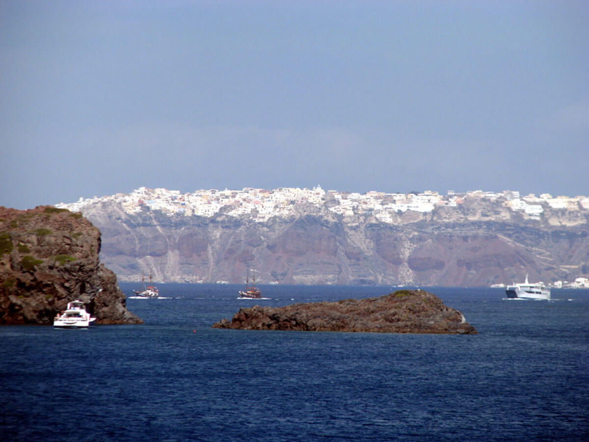 Take the cable car from Fira down to sea level to embark on a spectacular three-hour cruise around the caldera, the remains of the volcano which collapsed in the 16c BC, and which form the islands of Santorini. We stop at Nea Kameni, where we can walk up to the top of the volcano, and there will also be a stop for swimming from the boat. Later drive to Oia, a characteristic village which faces west and from where spectacular sunsets can be seen. Then enjoy dinner at one of Oia’s restaurants before returning to our hotel. (Breakfast / Dinner)