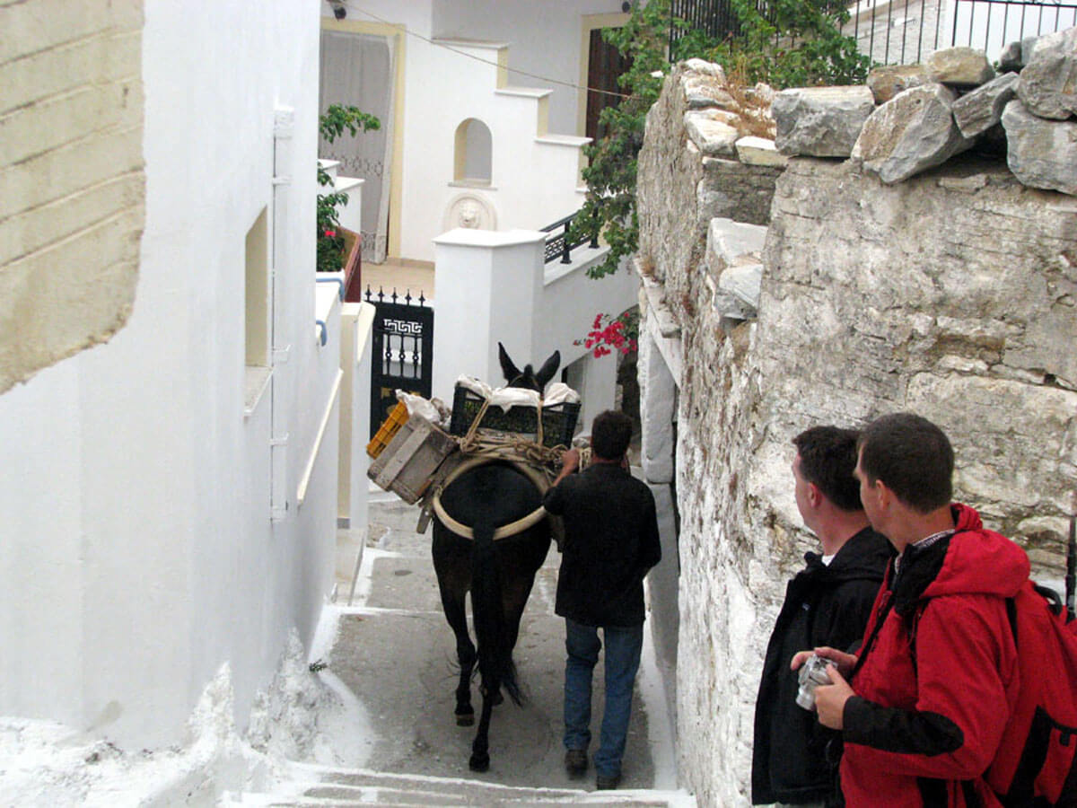 Drive into the hills behind Chora to the small village of Damalas, visiting a traditional pottery workshop to see how for millennia humble clay has been turned into works of art. Then move on to the village’s restored olive press, gaining precious insight into olive oil production on the island and a way of life that now belongs to the past. We cross to the center of the island and Halki, a village situated in a fertile plateau, adorned with beautiful neoclassical mansions and home to the Vallindras Distillery, the first to make the now iconic liqueur ‘Kitron’. Learn everything about the production process from tree to fruit distillation methods, and the consumption (tasting) of one of the three “Protected Designation of Origin” liqueurs in Greece. We’ll settle the Kitron with some lunch.Following a short stop at the paleo Christian church of Panagia Drosiani, partly dating to the 4th century and considered one of the oldest in the Balkans, continue to the picturesque mountain village of Apiranthos. The marble-paved alleys, majestic views, distinct traditions and the rich culture are only a few of the charms that will make you fall in love with this jewel of a village. Finally, visit the lush settings of Flerio, an important area throughout antiquity for both the high quality of its marble but also for the fresh water it provided the island. Nowadays a fragment of Flerio’s former glory survives in the impressive 7th century BC 20-foot statue of Kouros (dubbed ‘the Greek’). (Breakfast / Lunch)